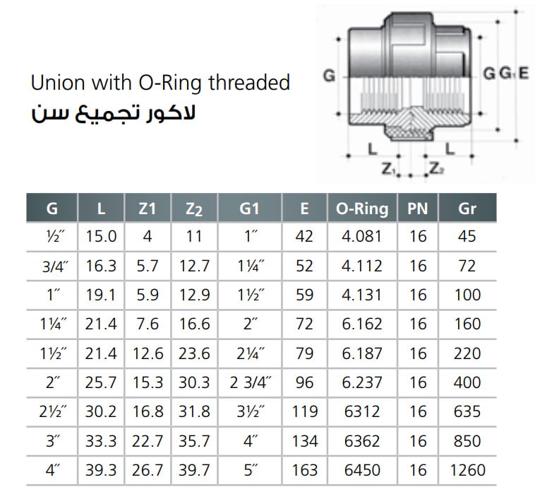 U-PVC Union with O-Ring