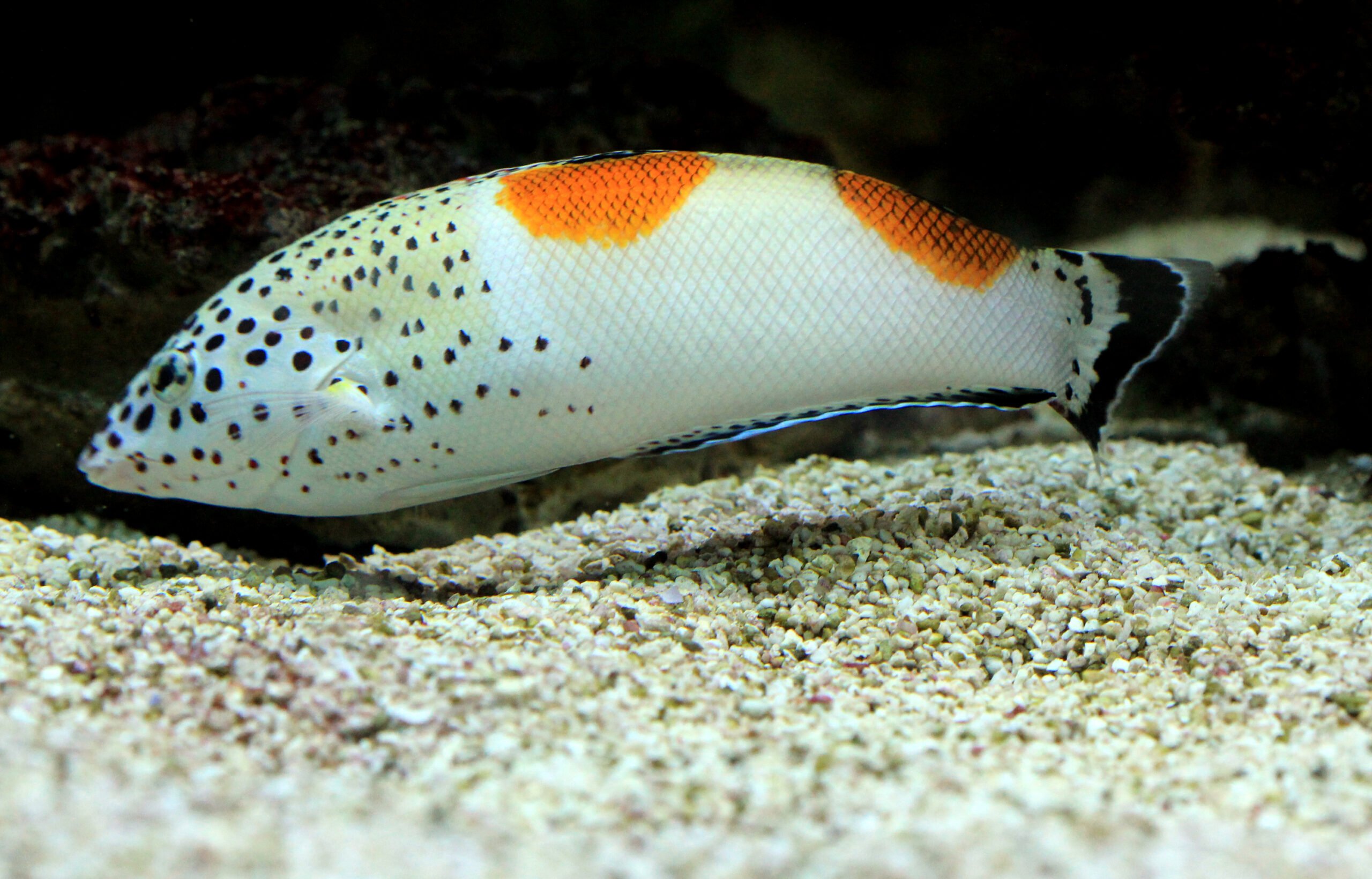 This species needs a minimum of 2 inch (5 cm) of sand in the aquarium bottom, so it can dig itself down when afraid or needing to sleep.
