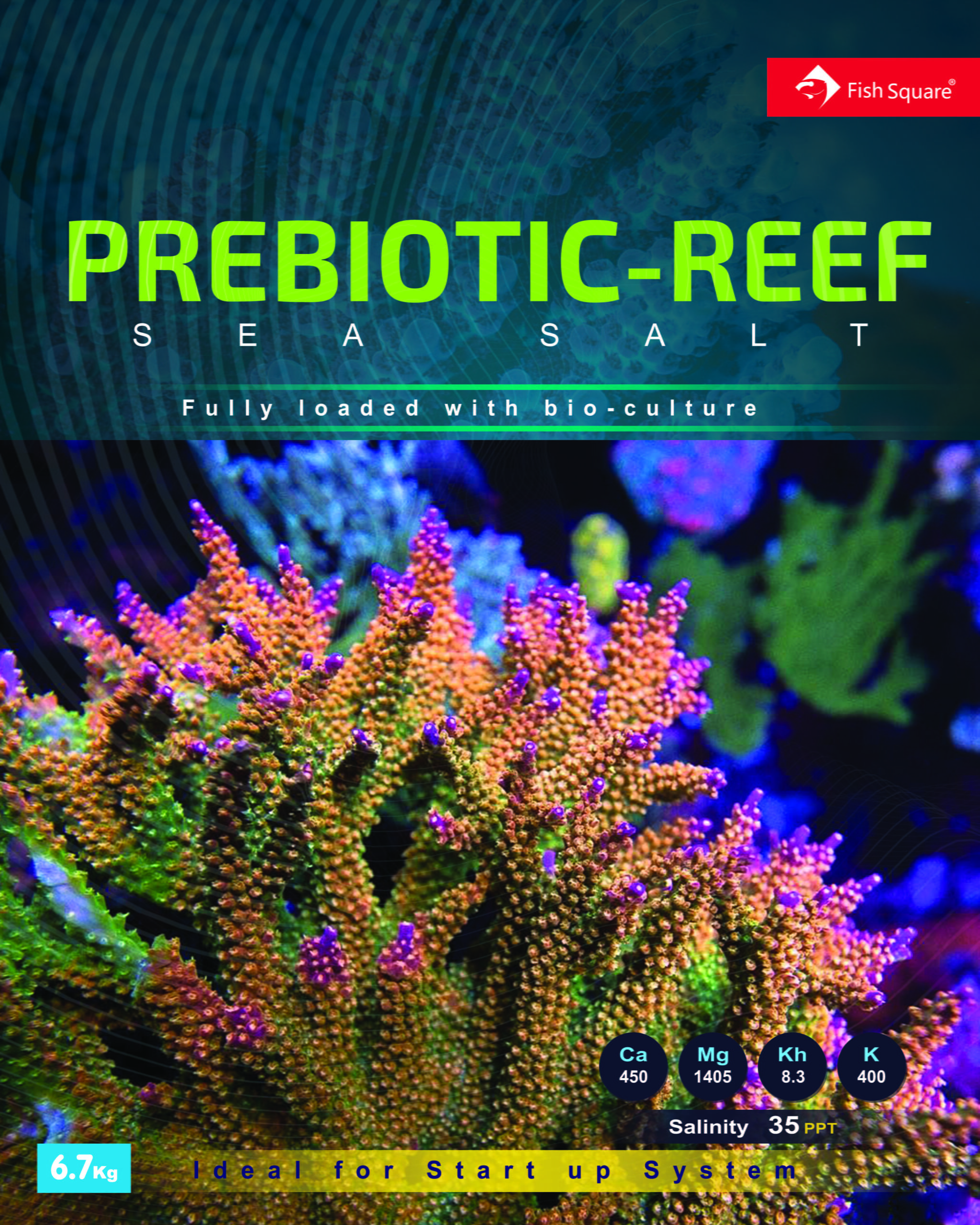 Fully synthetic marine salt created for cultured corals . Its formula is designed to create the best conditions for marine animals. The micronutrients and macronutrients contained in the formula fulfil the demand of corals for proper growth and pigmentation . Probiotic bacteria contained in the salt reduce the content of nitrates and phosphates and prevent the growth of pathogenic bacteria in the marine aquarium. After dissolving the salt, freshly prepared marine water can be used immediately. When setting up new aquariums , it is recommended that the first animals are placed no sooner than 10-14 days after filling the aquarium . Due to the content of probiotic bacteria the dKH value should be maintained at 6.5-8.4 . Higher values may have a negative effect on the growth of SPS corals